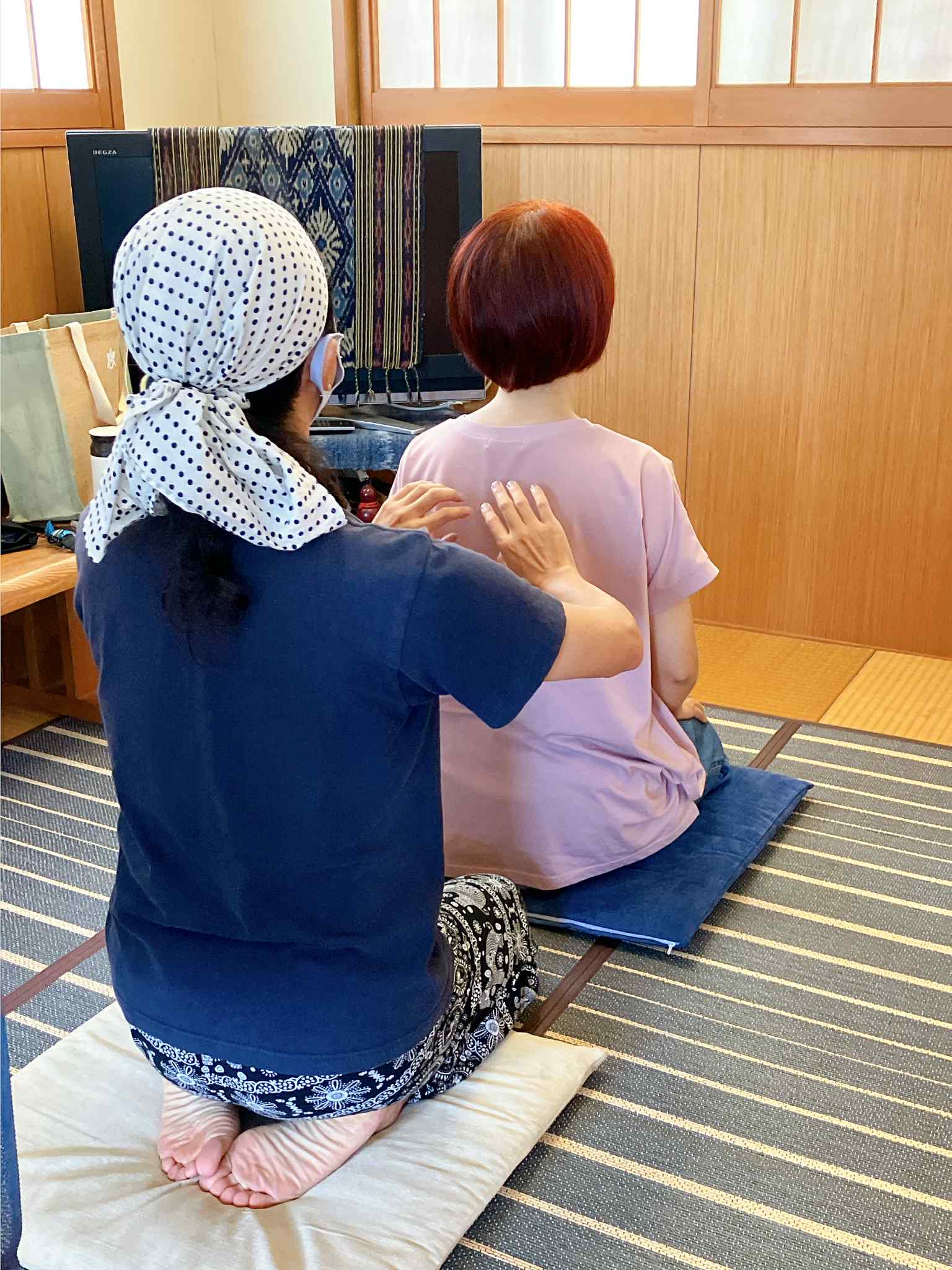 ・月に1度の坐禅会で、タッピングタッチの体験会をしてもらっています。実際にふれてケアし合うことを、坐禅会のときに教えてもらっています。今日はオンラインでも、ひとりでもできるセルフタッピングを教えてもらえました。どちらもいいですね。