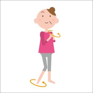 ・手首をやわらかくする準備運動(手を組んで8の字に回す)をする
