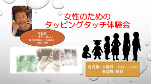 「頑張らない」で「女性だけの集まりを楽しむ」を私自身の基本姿勢として、基礎講座Aでなくて体験会としました。もちろんただのおしゃべり会ではなく、あくまでタッピングタッチを体験してもらうのが目的です。