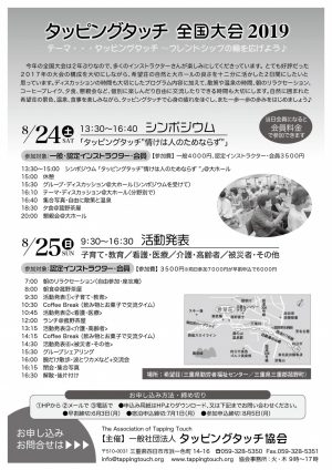 ★ 内容・宿泊・割引など詳細についてはこちらー>TT全国大会 2019 プログラム